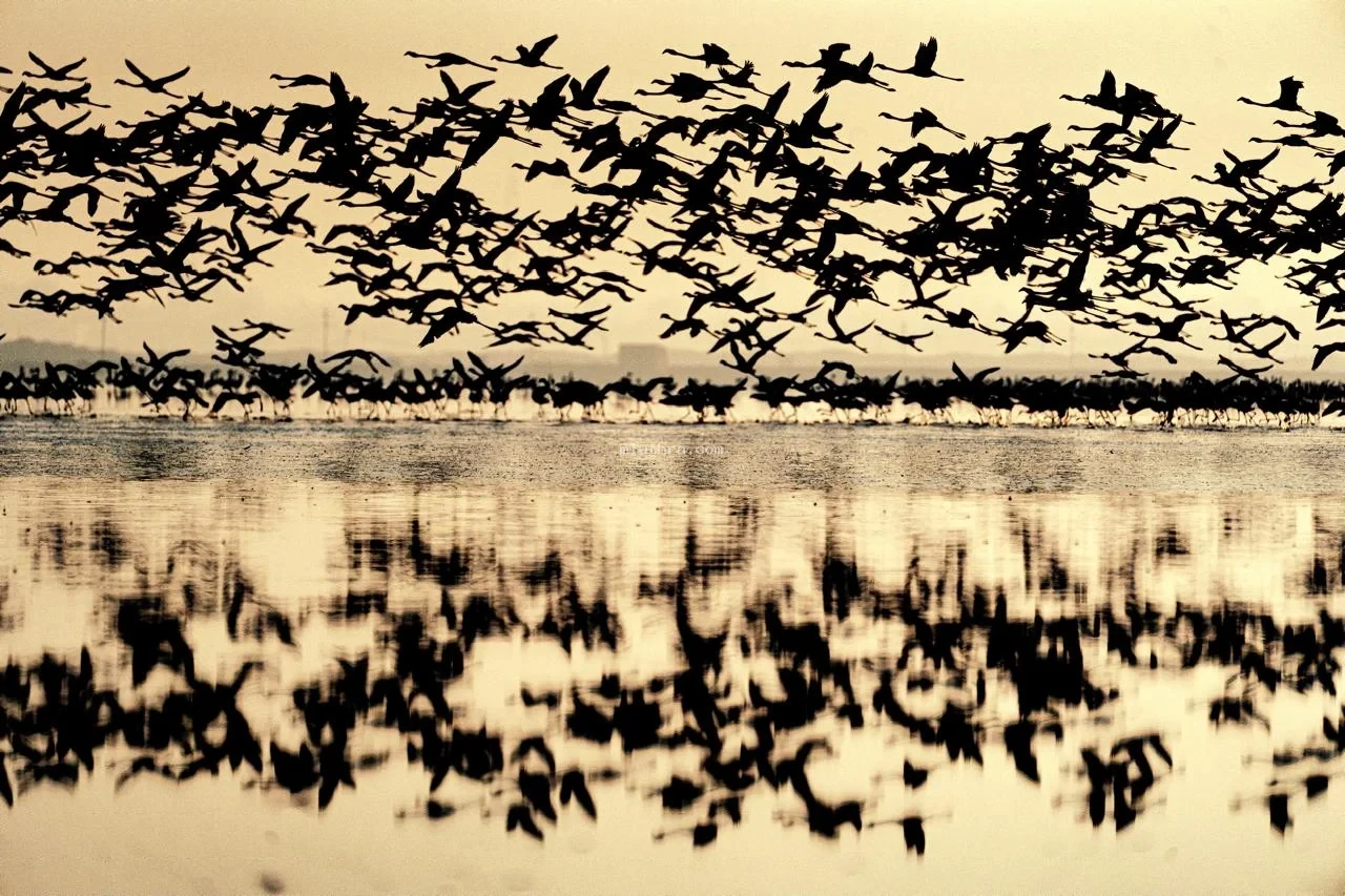 Flamingos turning Sambhar lake into a sea of pink